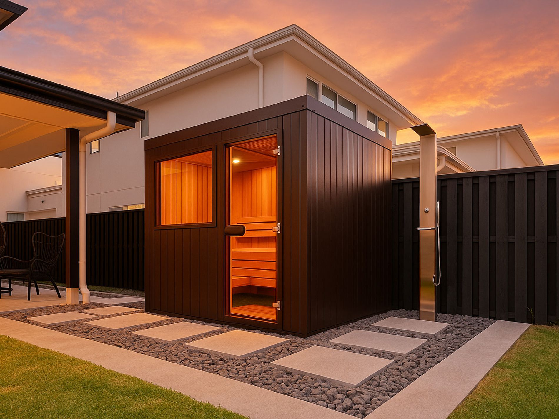 • Private backyard sauna for your own wellness retreat